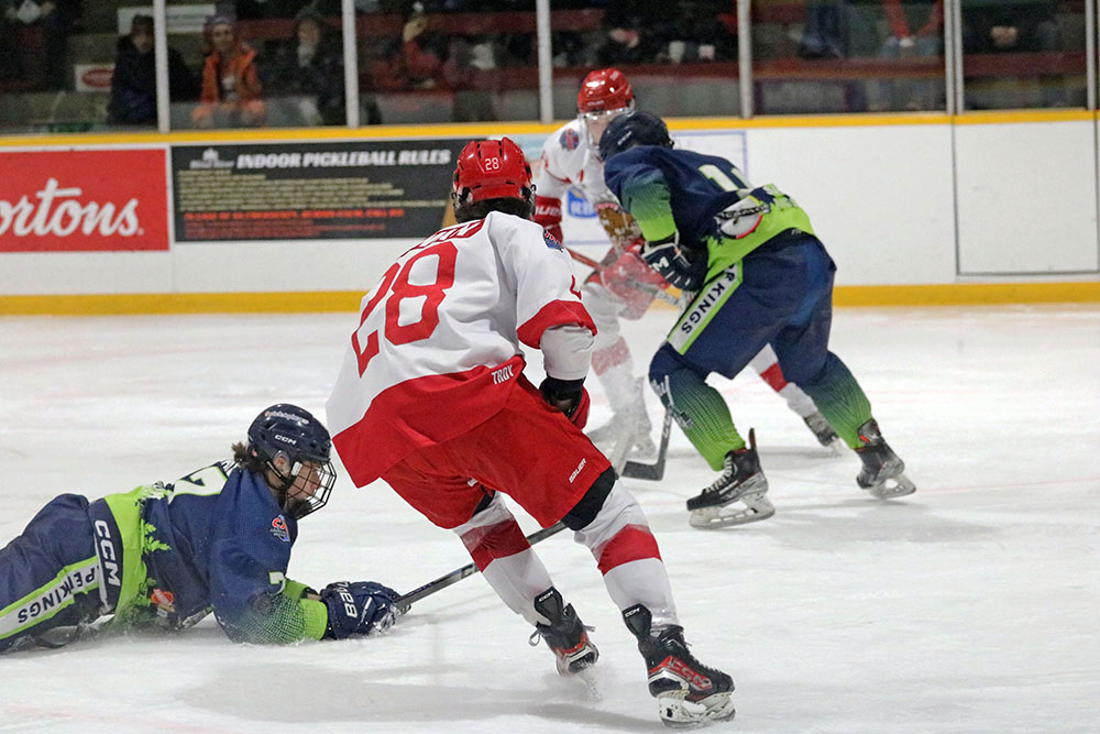 Staying 4-3 until the late going, Espanola got their goaltender out for another skater to try and tie it and force overtime, however Ethan McLean secured the home-ice victory with an empty net effort in the final minute to finish off the scoring.