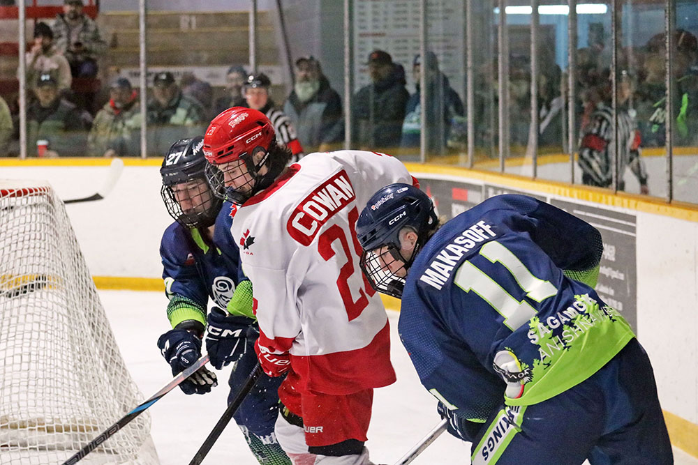 Continuing to go back and forth, Leighton Hurst tied the match-up once more when the Blind River defenceman joined a rush and slammed in a rebound off a solid Danny MacDonald dash down the right wing.