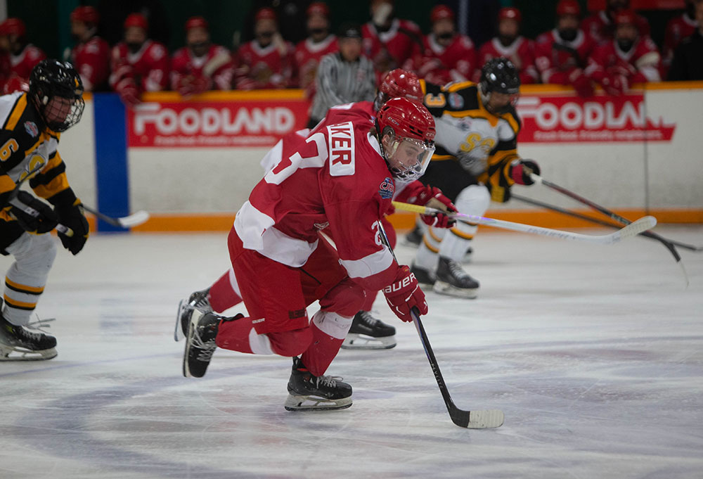 Notching another six minutes later, Sault Ste. Marie made it 2-0 when Lucas Caulfield sent a pass into the slot that Carter Huckson skated into and buried for his first NOJHL goal.